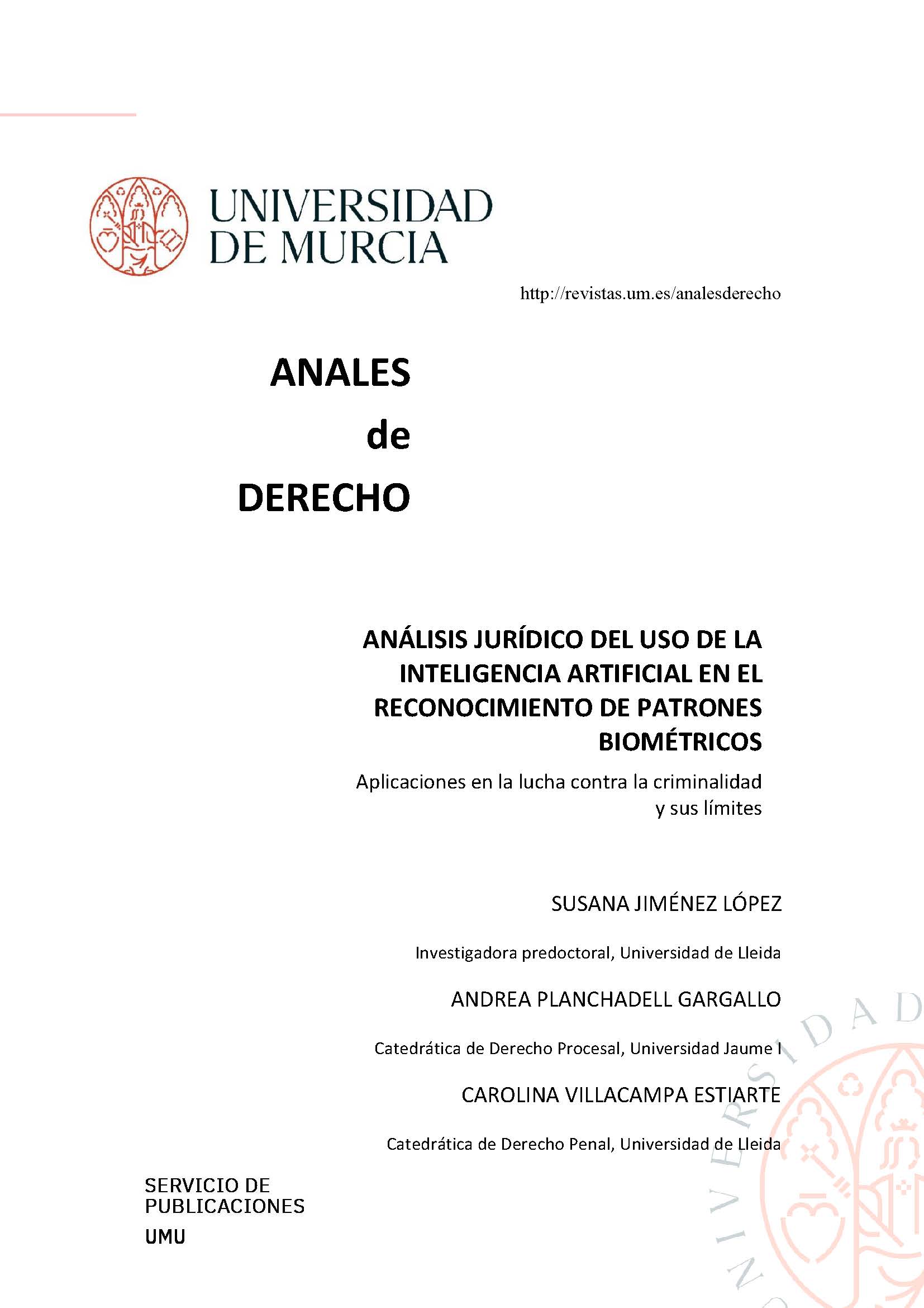 RICHARD GONZÁLEZ, M., “Los sistemas biométricos de reconocimiento facial en la Unión Europea en el marco del desarrollo de la Inteligencia Artificial”, Justicia, núm. 1, 2023, pp. 147-281.