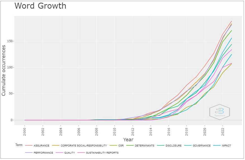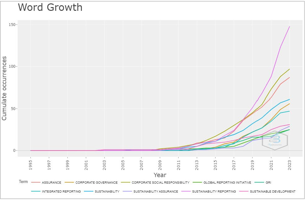 The quantity of published works has significantly risen since 2011, with this trend mainly being attributed to the global economic crisis that impacted economies across the globe from 2008 to 2010. During this time, there was an increasing need for more dependable disclosure of financial and non-financial information, which sparked renewed conversations about the necessary assurance for such information (Yan et al., 2022). Additionally, there has been a marked increase in publications since 2018, fuelled by the heightened attention on sustainability reporting assurance among diverse institutions and professional organisations. The growing interest in sustainability reporting is connected to the increasing complexity of challenges faced by professionals who assure these reports' accuracy. While many assurance providers focus on reports from large corporations and groups, there is currently no widely accepted standard for sustainability reporting assurance (European Court of Auditors, 2019).