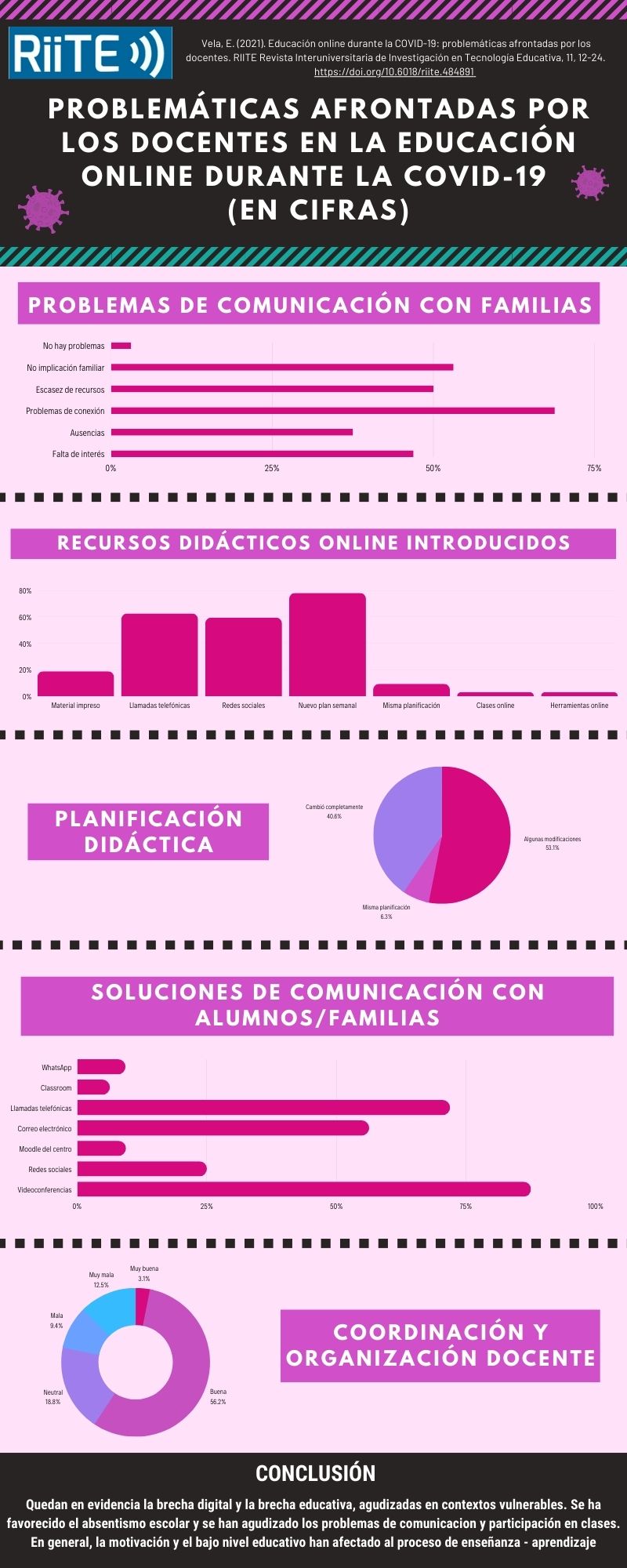 Por último, en relación a los resultados obtenidos, podemos observar cómo las problemáticas que los docentes han tenido que afrontar, cómo pueden ser la falta de recursos tecnológicos o la escasa implicación familiar, han dificultado gravemente el proceso de enseñanza aprendizaje del alumnado, provocando sentimientos de frustración entre el equipo docente y las familias. Por ello, ante esta situación los docentes han realizado un seguimiento diario del alumnado a través de videoconferencias y han mantenido una comunicación fluida con las familias a través de llamadas telefónicas, debido al escaso uso que las familias y alumnado realizaban de los entornos digitales proporcionados por el centro.